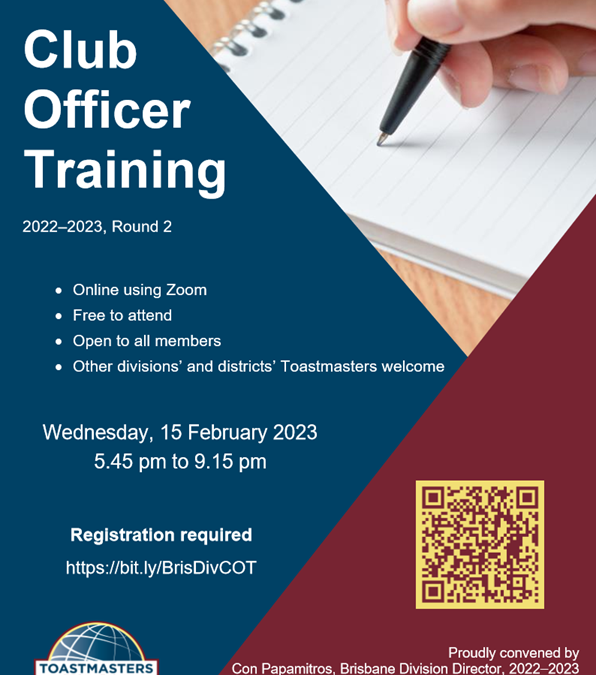 Northern Division’s Club Officer Training via Zoom. Two sessions will be convened — 2 and 6 February 2023 — each with the same agenda. All current club officers, members considering serving as a club officer, and members just curious about the roles are...