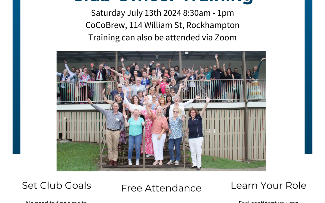 Club Officer Training convenient for Central Division Areas 16 and 22 will be held on Saturday 17th February 2024 from 8.30am to 1pm at Nambour Anglican Parish, 174 Currie St, Nambour. All members welcome. Register...